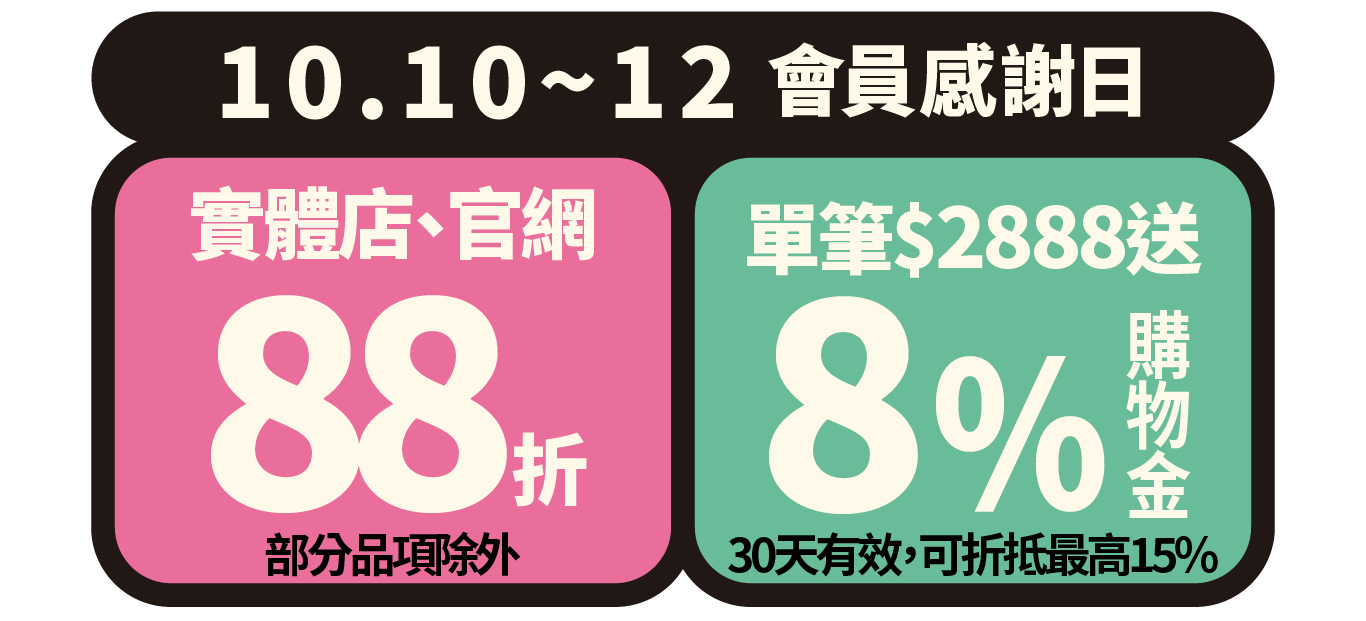 會員感謝日10月10日~12日,共3日