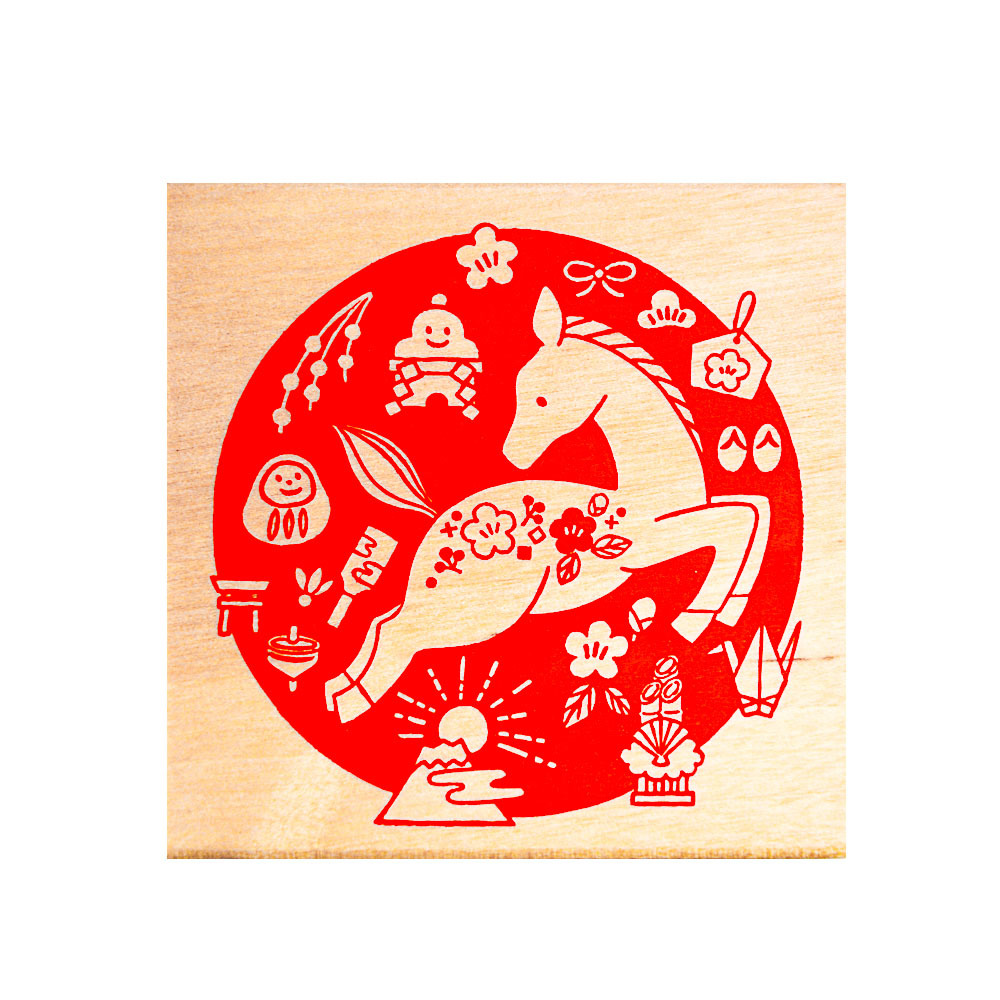 印章尺寸約70x70mm,握把高度20mm。最迷你尺寸的賀年卡裝飾用印章。日本Kodomo no kao出品。