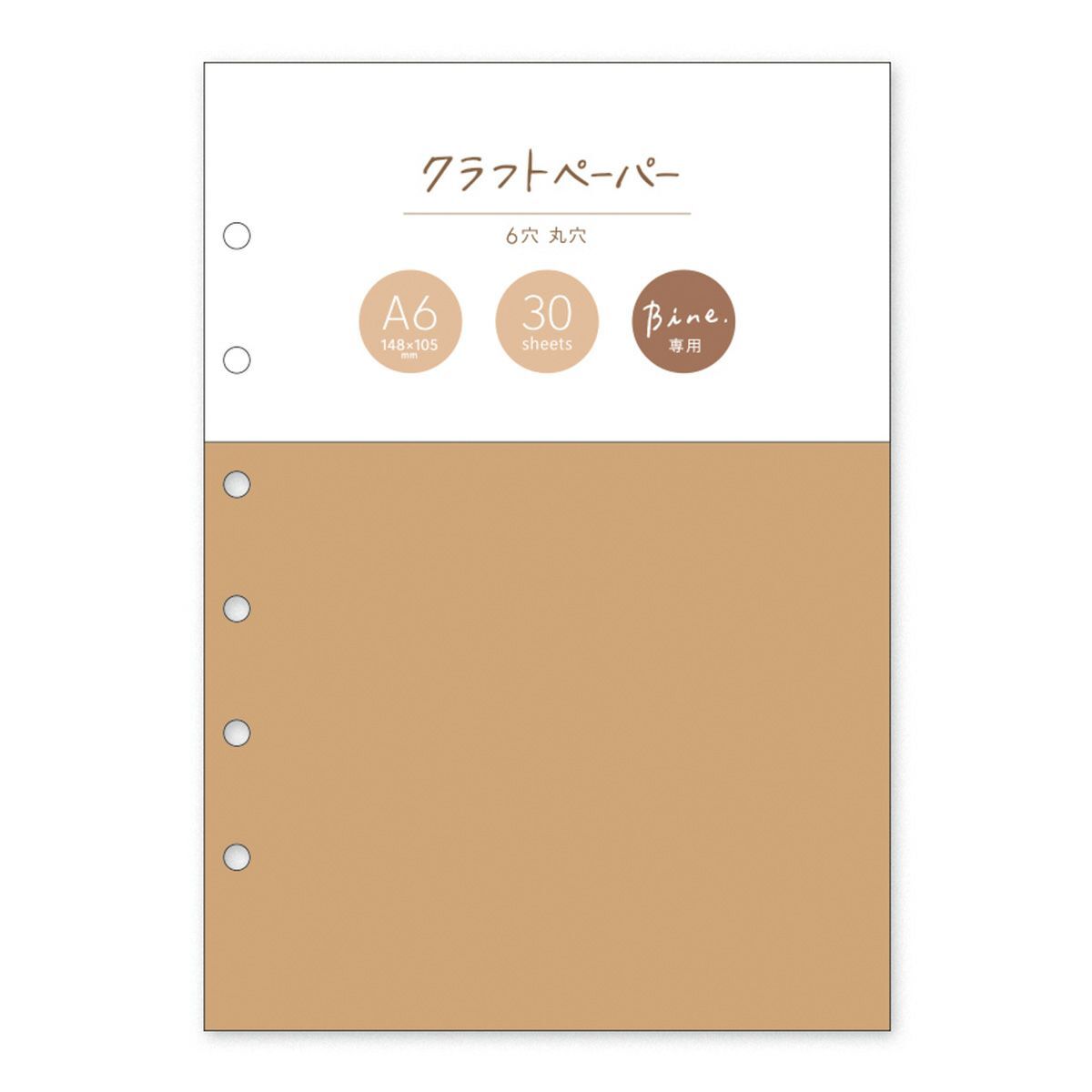 Bine透明活頁手帳A6專用補充包。內頁尺寸148x105mm,A6六孔活頁夾專用,牛皮紙內頁共30張。日本MINDWAVE出品,日本製。