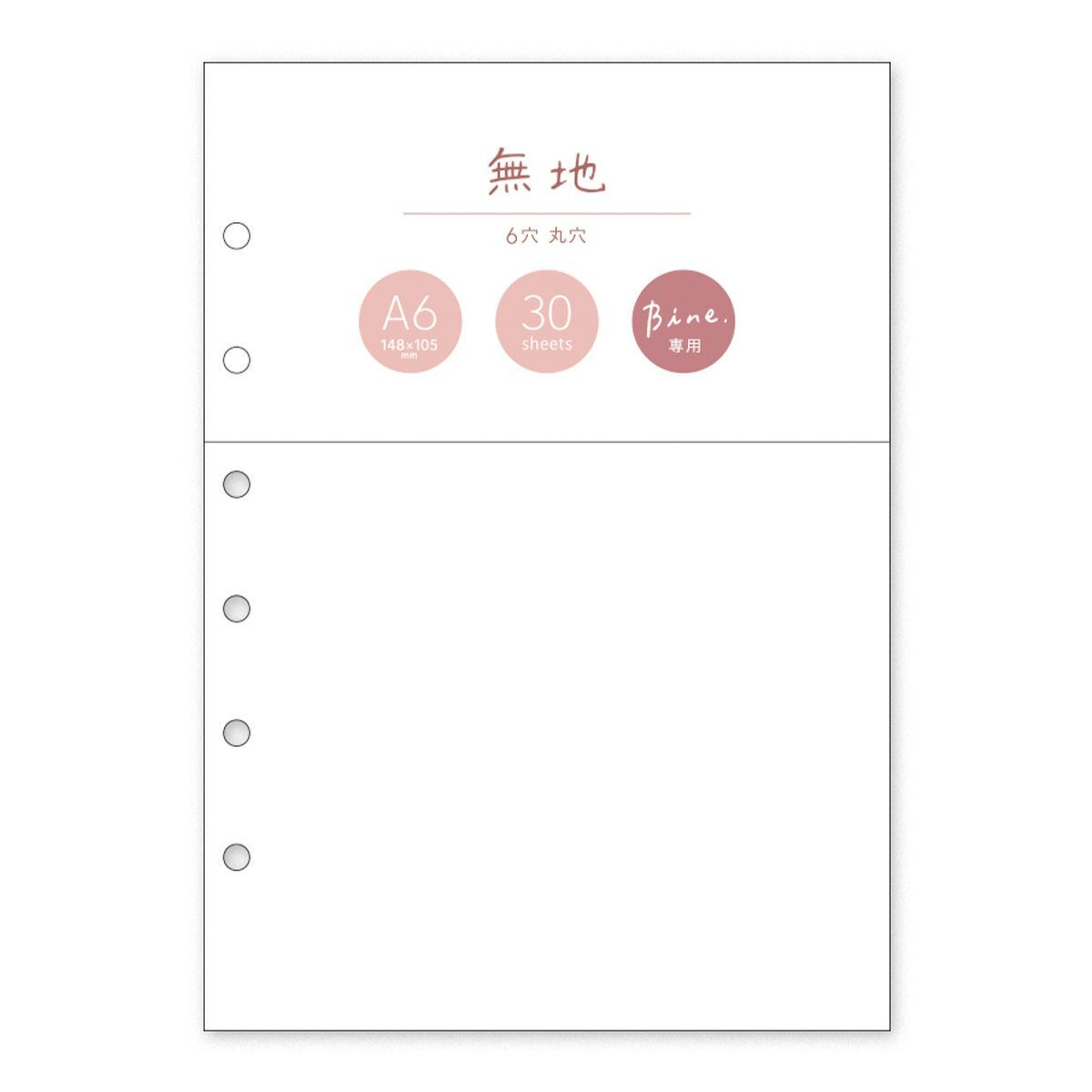 Bine透明活頁手帳A6專用補充包。內頁尺寸148x105mm,A6六孔活頁夾專用,空白內頁共30張。日本MINDWAVE出品,日本製。
