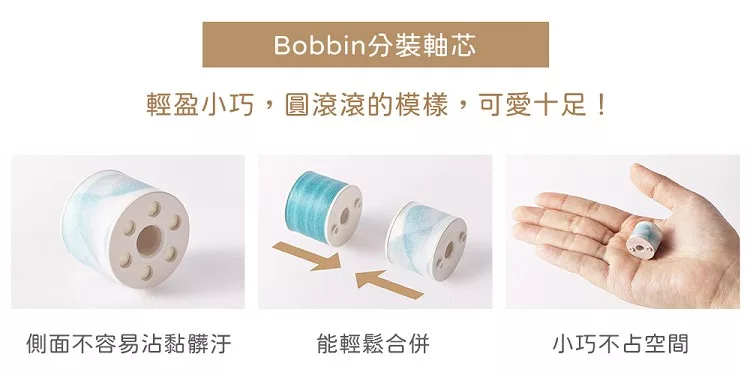 分裝用軸芯,需搭配Bobbin本體使用。可安裝到迷你膠台或攜帶盒(附切割器)中使用更便利。
