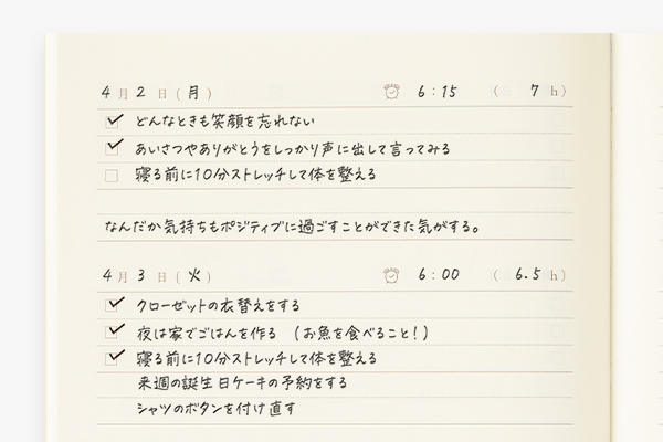 這是一本推薦給想要重視晨間活動和早晨時間的人,從每天的一開始書寫今日目標的日記。即使是忙碌的人也能輕鬆使用,只需要像是寫待辦清單一樣的寫下幾行,無壓力的格式讓你可以持之以恆的每天記錄。內頁採用的是MD Paper,書寫不易透頁、暈染,提供高品質的書寫體驗。