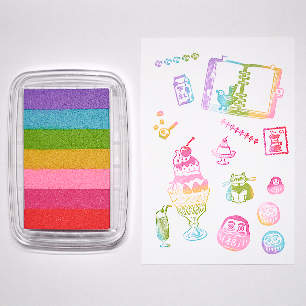 包裝尺寸112x78x17mm。2025年全新推出的漸層顏色印台,包含7種配色,可以輕鬆地蓋出美麗的花田色彩。日本製。