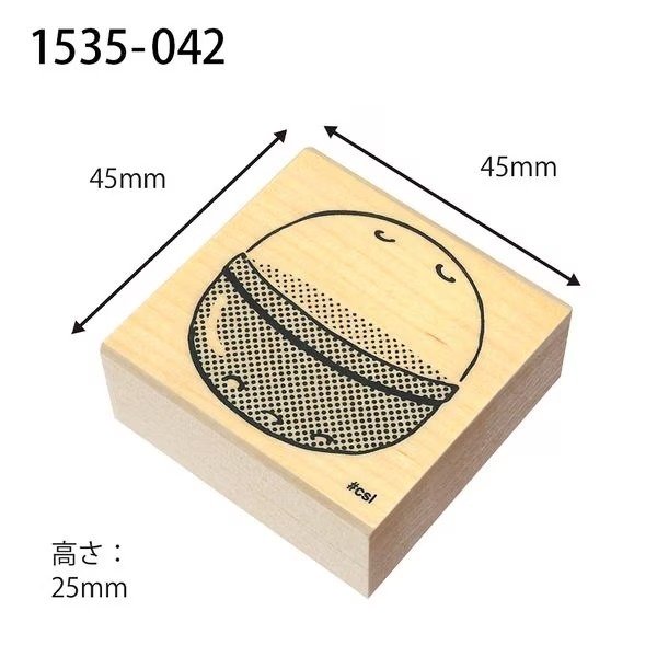 45x45mm,握把高度25mm。木質握把、橡皮印面。日本Kodomo no kao出品,越南製。