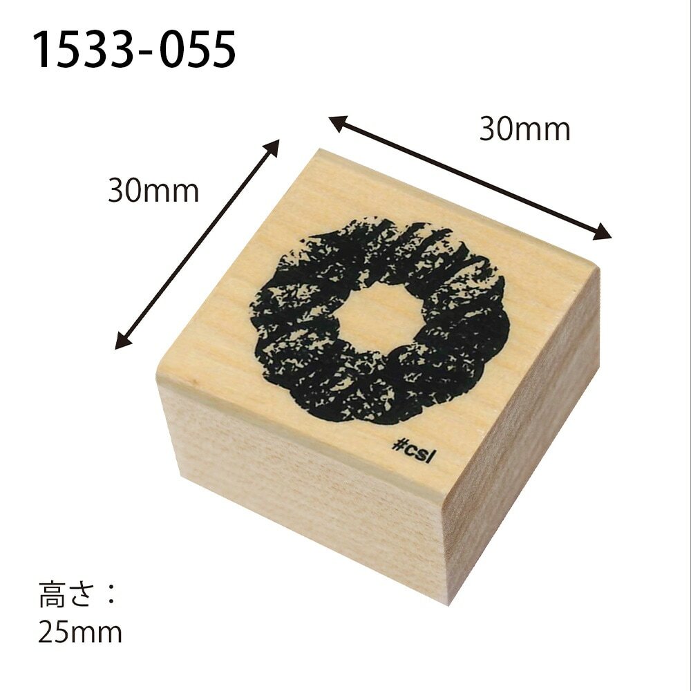 30x30mm,握把尺寸約 25mm。木質握把、橡皮印面。日本Kodomo no kao出品。