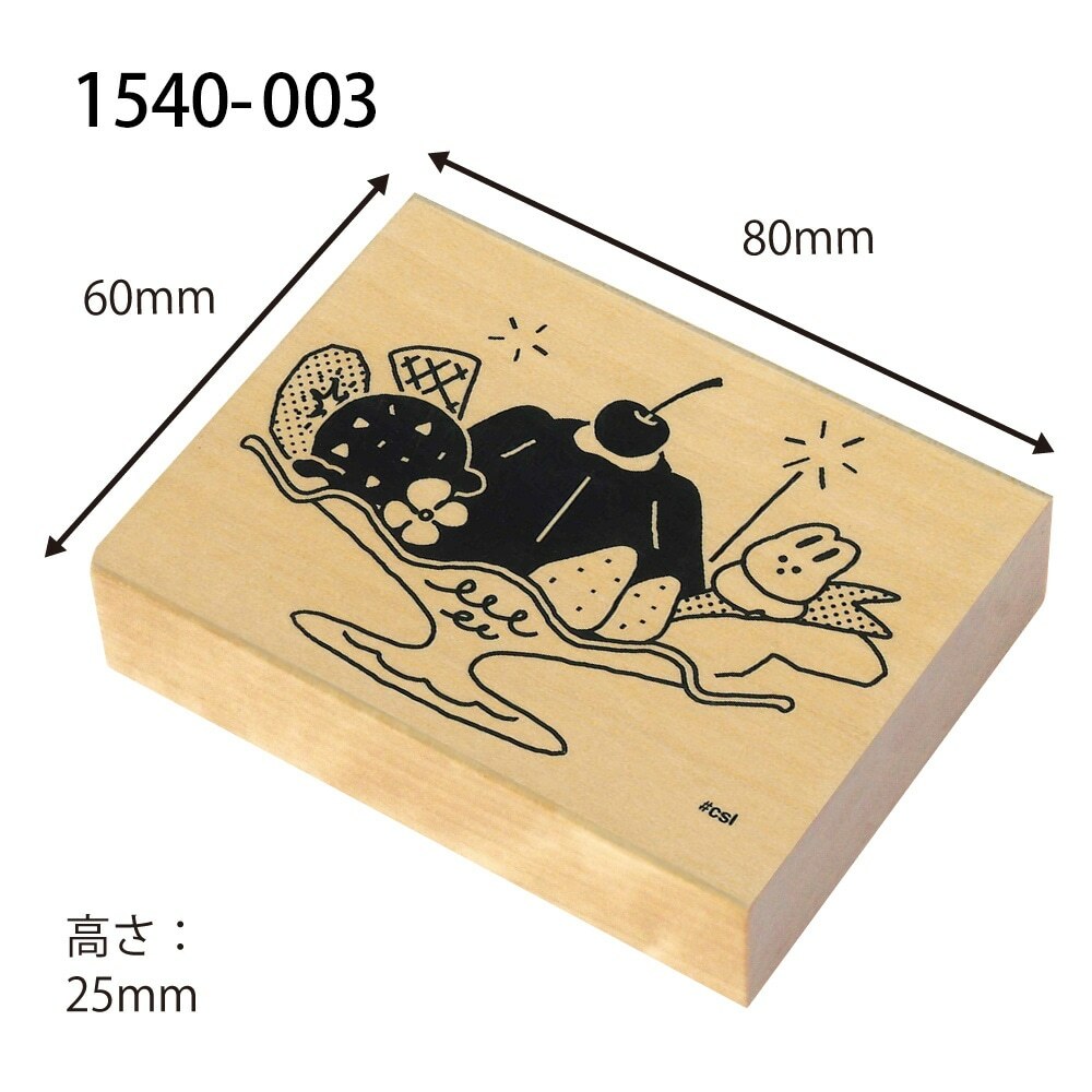 80x60mm,握把尺寸約 25mm。木質握把、橡皮印面。日本Kodomo no kao出品。