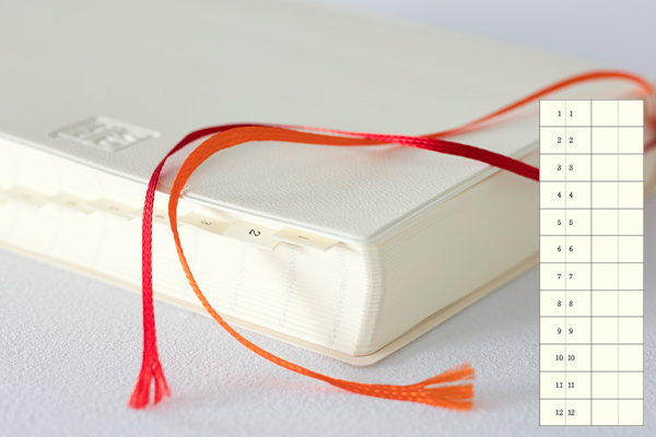 日記本包含2個書籤繩,你可以用來放在使用中的月計劃表、日記頁。另外也包含一份索引貼紙,可以讓你使用日記本時更加有效率。