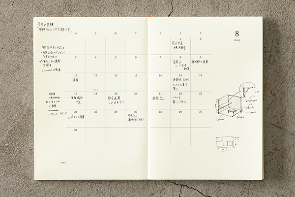 內頁採用MD Paper,是midori自行開發的高品質日本製造紙張,至今仍然不斷地進化中,讓書寫體驗與時俱進,提供符合這個時代的最佳書寫體驗,不只書寫時感到療癒舒適,也大大降低墨水滲透和暈染的情況。手帳日記採用縫線方式裝訂,讓你可以平整的打開且輕鬆的書寫,筆記本即使每天使用也堅固耐用。不只內頁採用MD Paper,現在封面、襯頁都是MD Paper,確保你可以享受最全面的優質書寫體驗。