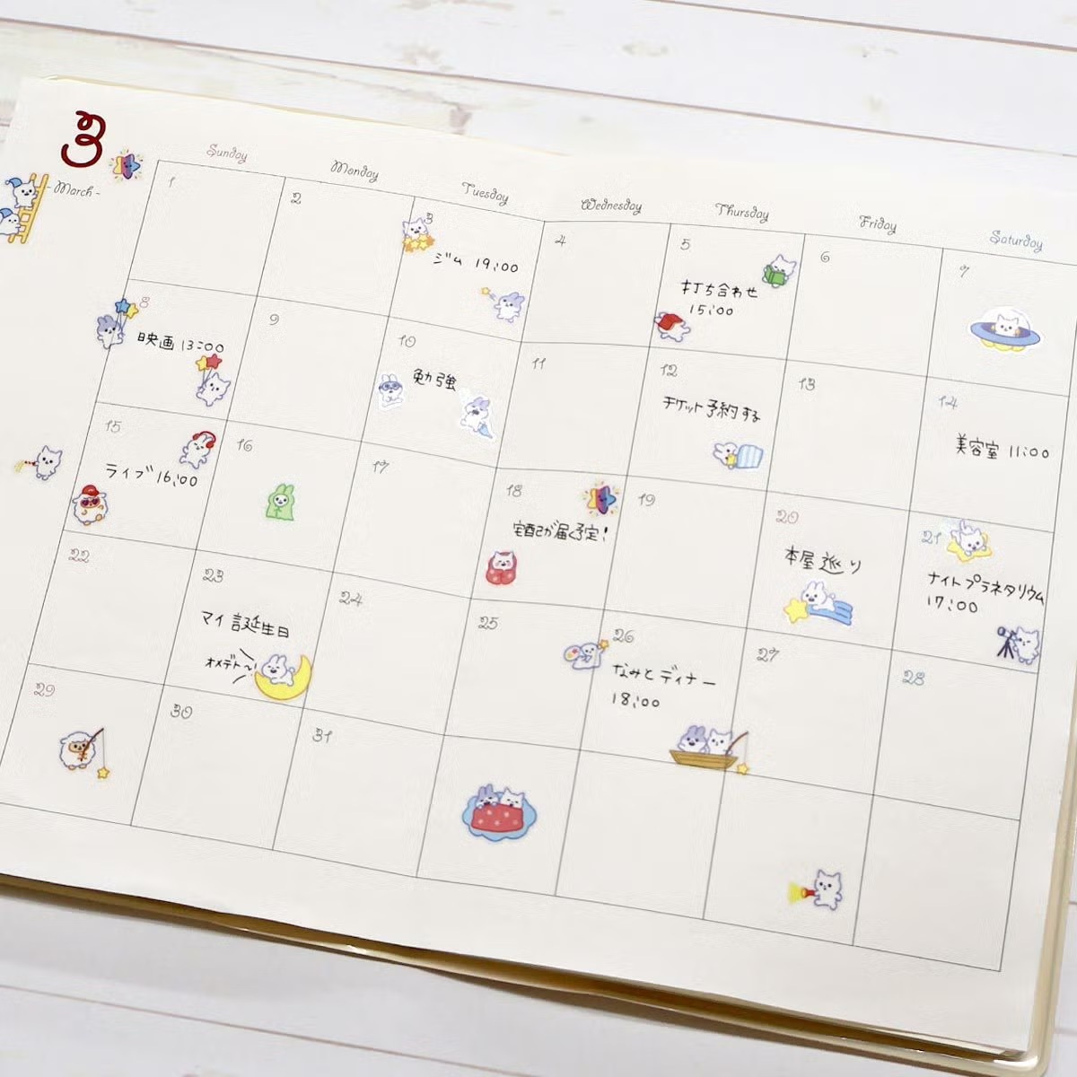 日本MINDWAVE超人氣超值原創插畫貼紙系列。特別適合手帳、行事曆使用的迷你尺寸貼紙圖案。包裝尺寸200x90mm。透明PET材質貼紙。日本製。