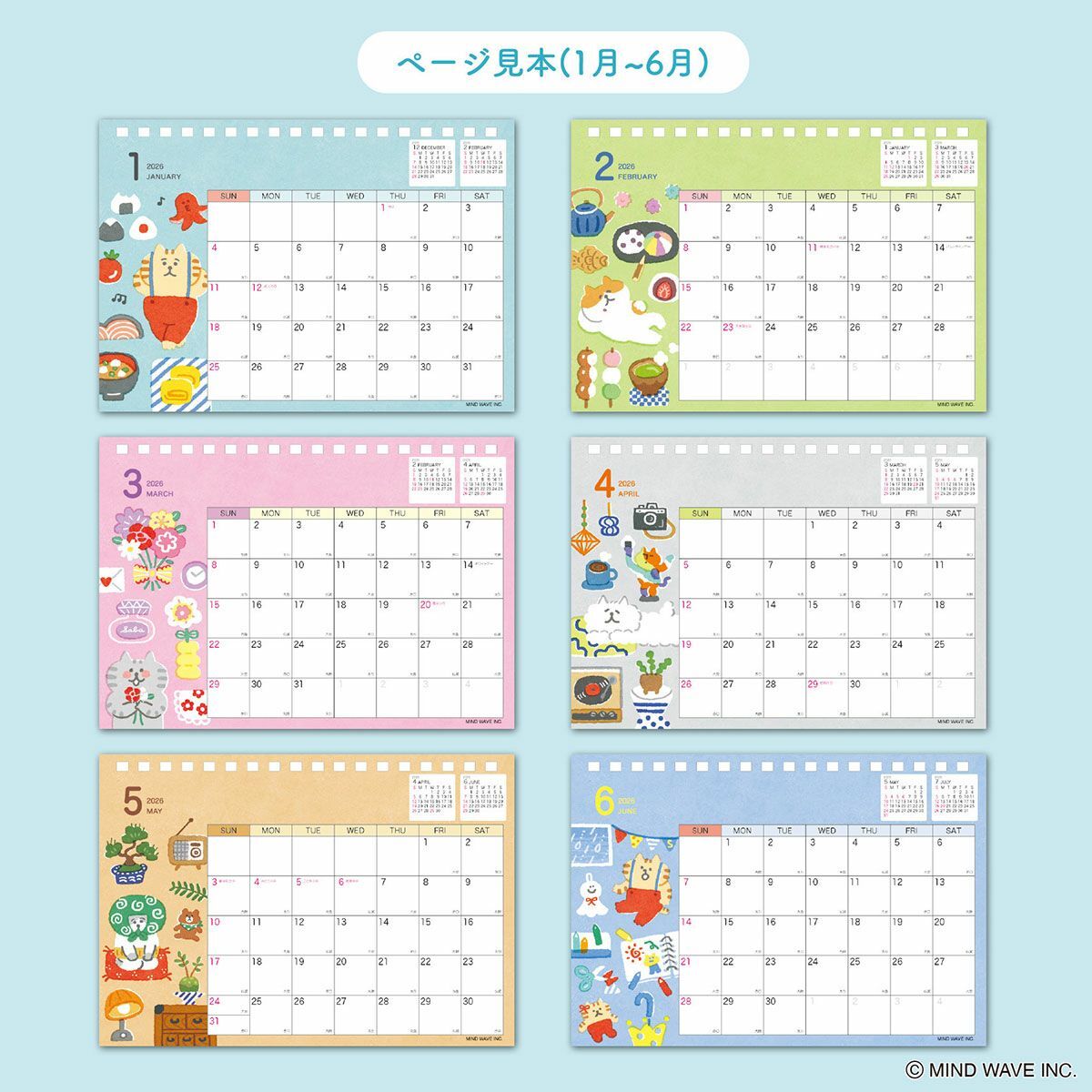 日本MINDWAVE最有人氣三明星角色的三角桌曆,2026年度新登場。包裝尺寸143x188x13mm。上質紙材質共13頁(封面+12個月)。18孔雙環裝。日本MINDWAVE出品,日本製。