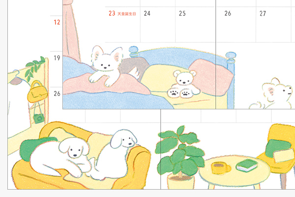 2026年的主題是「和心愛的狗狗們共度」。每翻開一頁,都能感受到彷彿童話故事般的狗狗專屬場景,同時也能觀察到四季的變化。