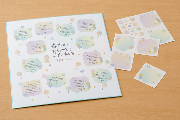 貼紙有預先割線,可以撕開後分發給要參與的人,讓大家寫完後回收,即可準備裝飾卡片。