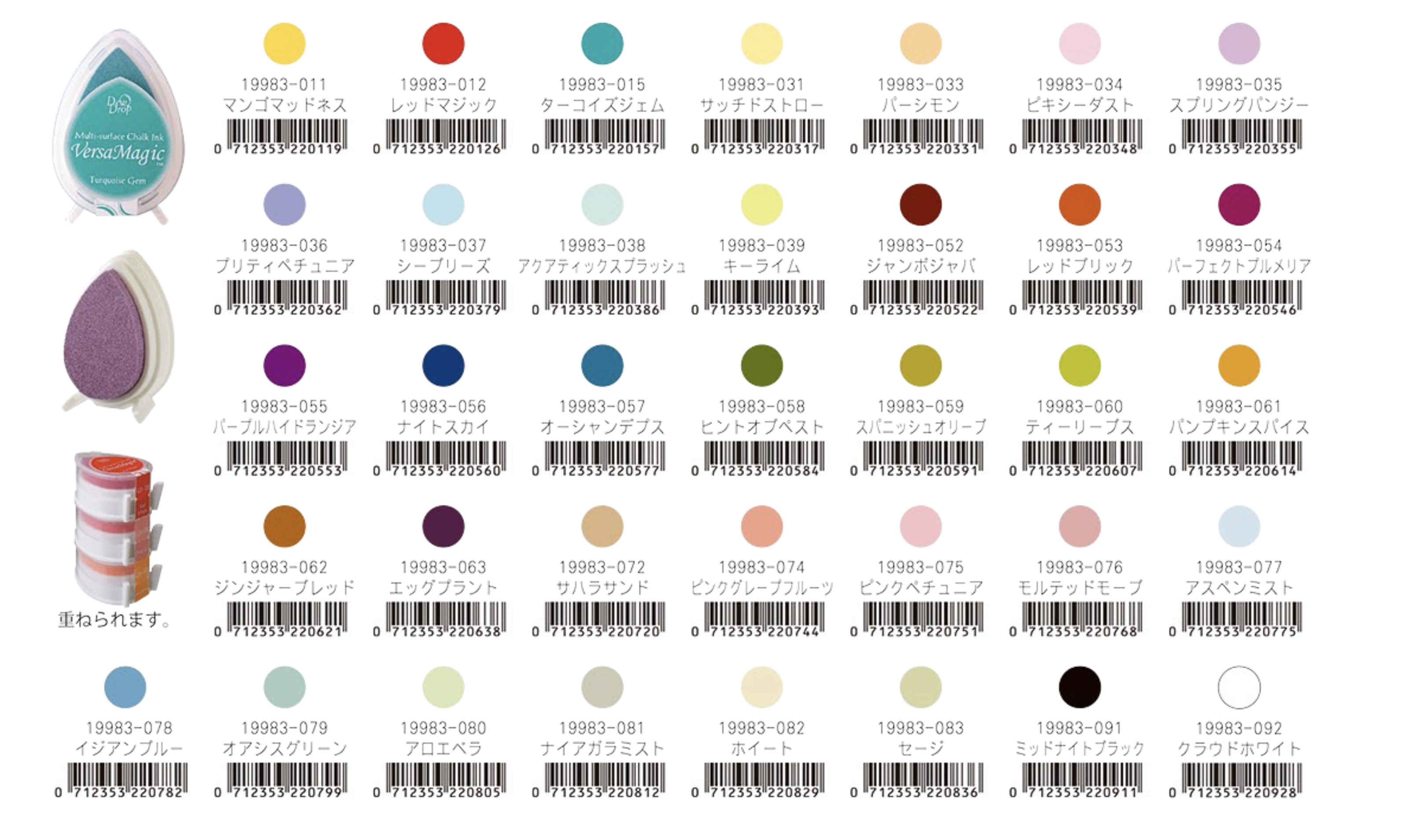 顏料系水性速乾型印台。33x50x22mm。共36色。