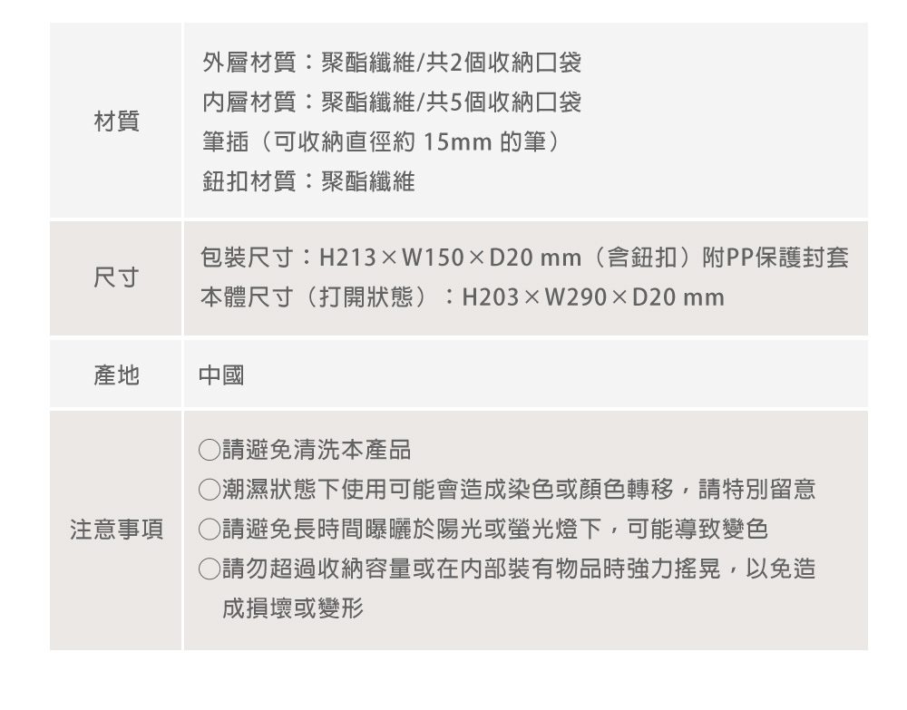 可以用來收納貼紙、便利貼等手帳小物,也能一起攜帶愛用的比,讓你外出紀錄更方便、整齊有型。書套使用具有自然質感的布料,翻蓋部分點綴了一顆設計感的鈕扣,作為巧思亮點。色調選用溫柔百搭的霧灰色,也能輕鬆搭配日常穿搭和小配件。